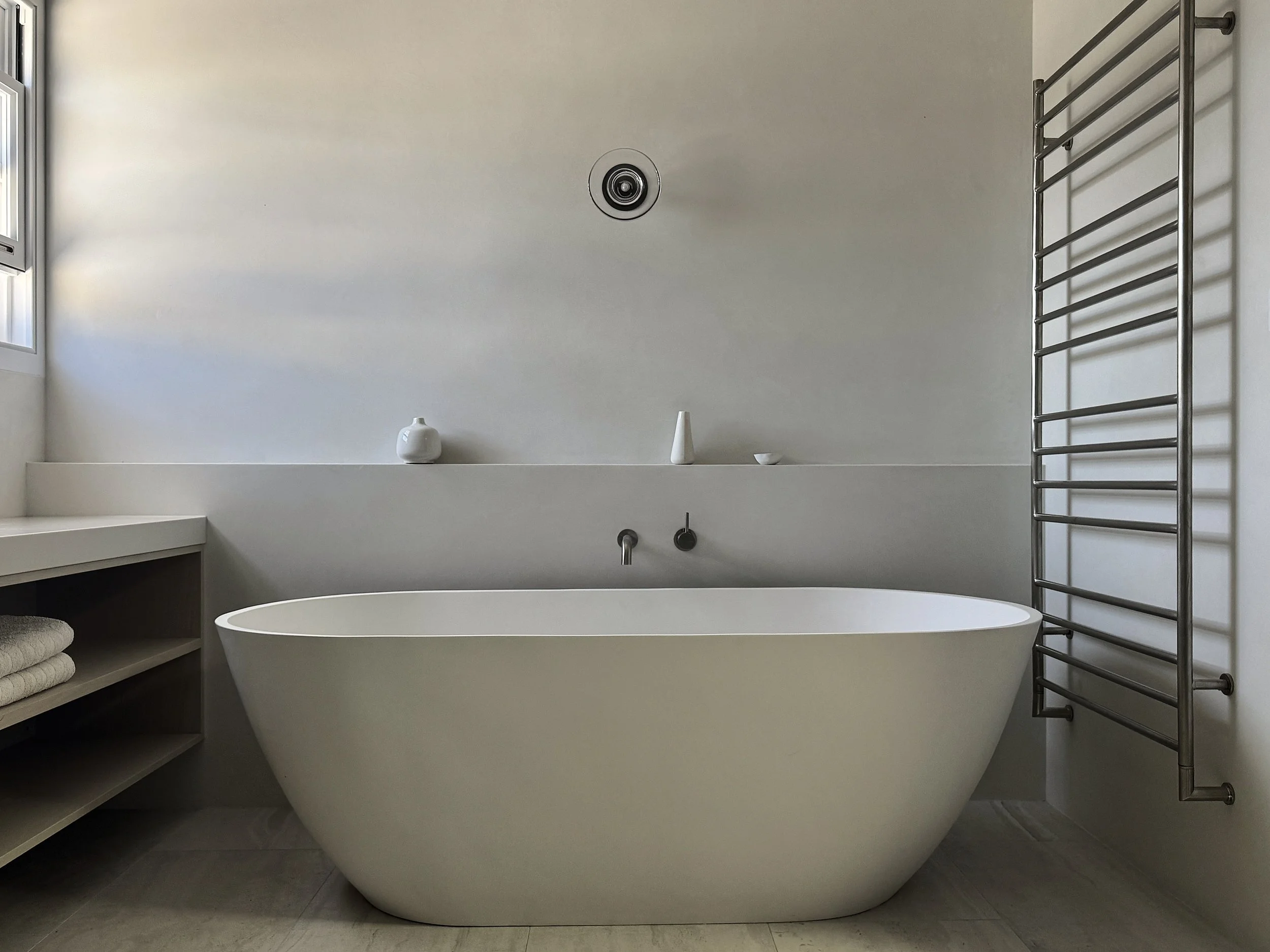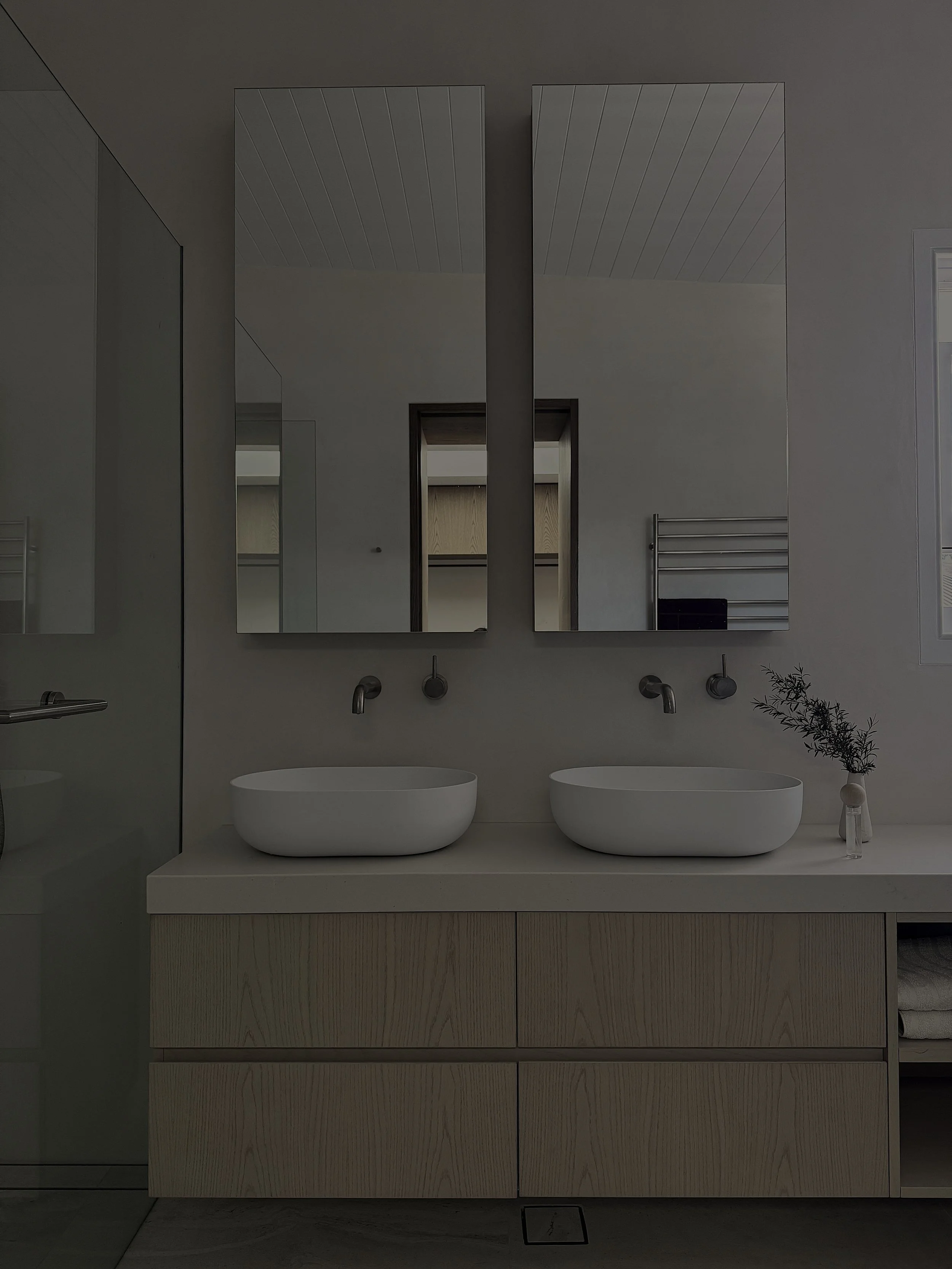 With a colour palette derived from the homes external environment of ocean and boscage. The minimal and highly resolved approach of textures and finishes, demonstrating the homes commitment to quality and meticulous detailing.